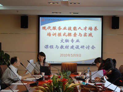 由人力資源與社會保障部和中國高等職業(yè)技術教育研究會并題研究的“現代服務業(yè)技能人才培養(yǎng)培訓模式的探索與研究”的課題于2009年12月26日正式開題,此次會議是對其中的一個子課題“文秘專業(yè)”人才培養(yǎng)培訓模式進行探討,并對文秘專業(yè)課程及教材建設進行研討。到會的人員有人力資源與社會保障部職業(yè)技能鑒定中心教材教研部的許遠副部長,中國高等職業(yè)技術教育研究會公共事業(yè)類專業(yè)協(xié)作委員會主任、課題組組長、天津職業(yè)大學鄧恩遠教授,課題組的秘書長、中國水利水電出版社北京萬水電子信息有限公司總經理楊慶川女士和來自北京財貿職業(yè)學院、北京信息職業(yè)技術學院、天津職業(yè)大學、北京青年政治學院、天津城市職業(yè)學院、天津濱海職業(yè)技術學院等10多所院校的專業(yè)教師共20余人。